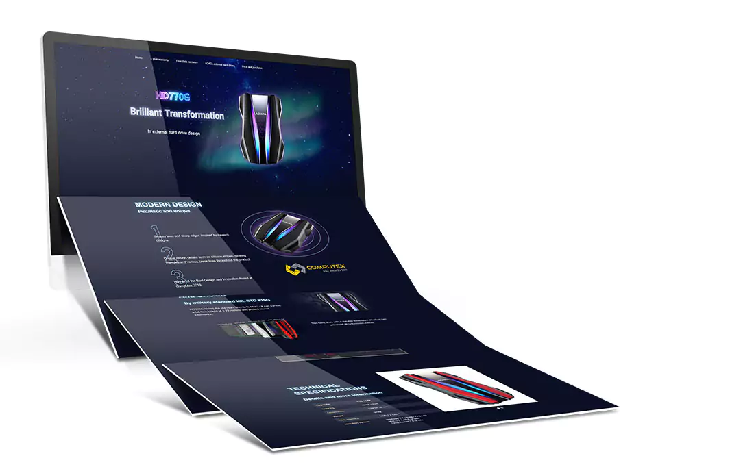 This project is a landing page to provide information about the external hard drive of ADATA. We tried to visualize the ADATA Hard-disk features using showy animations and effects, especially the remarkable RGB colour lights. We've done the graphic design and implementing the HTML files for this project.